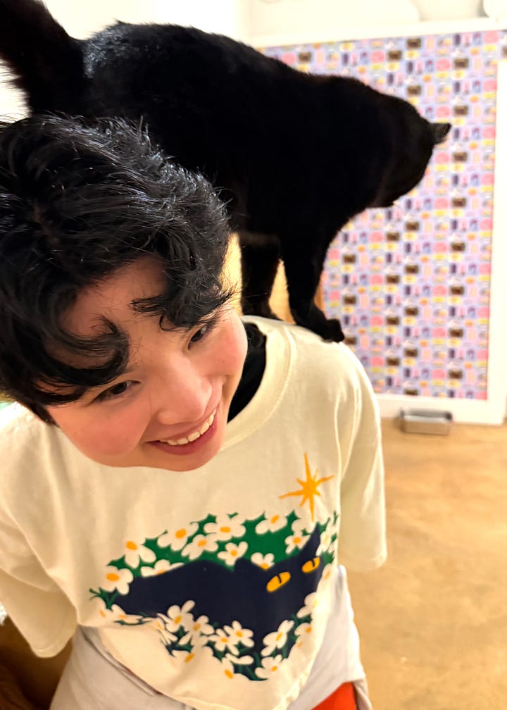 Since leaving her 9-5 to be a full-time artist mid-pandemic, she now spends her time sharing her life experience through comics like “fuck around and find out” (a whimsical story of bumping around like a Roomba “in the room of life”) and making fun-to-wear merch that brings her life perspective and emotions into yet another physical form (Check out her online store here!).