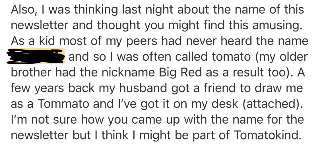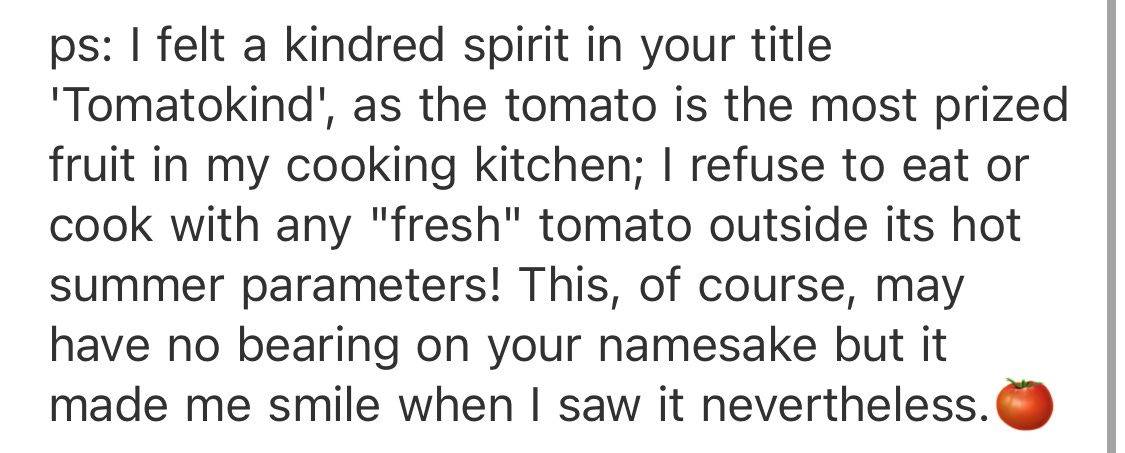 It’s also delightful to hear how you all connect with Tomatokind in so many interesting and special ways!