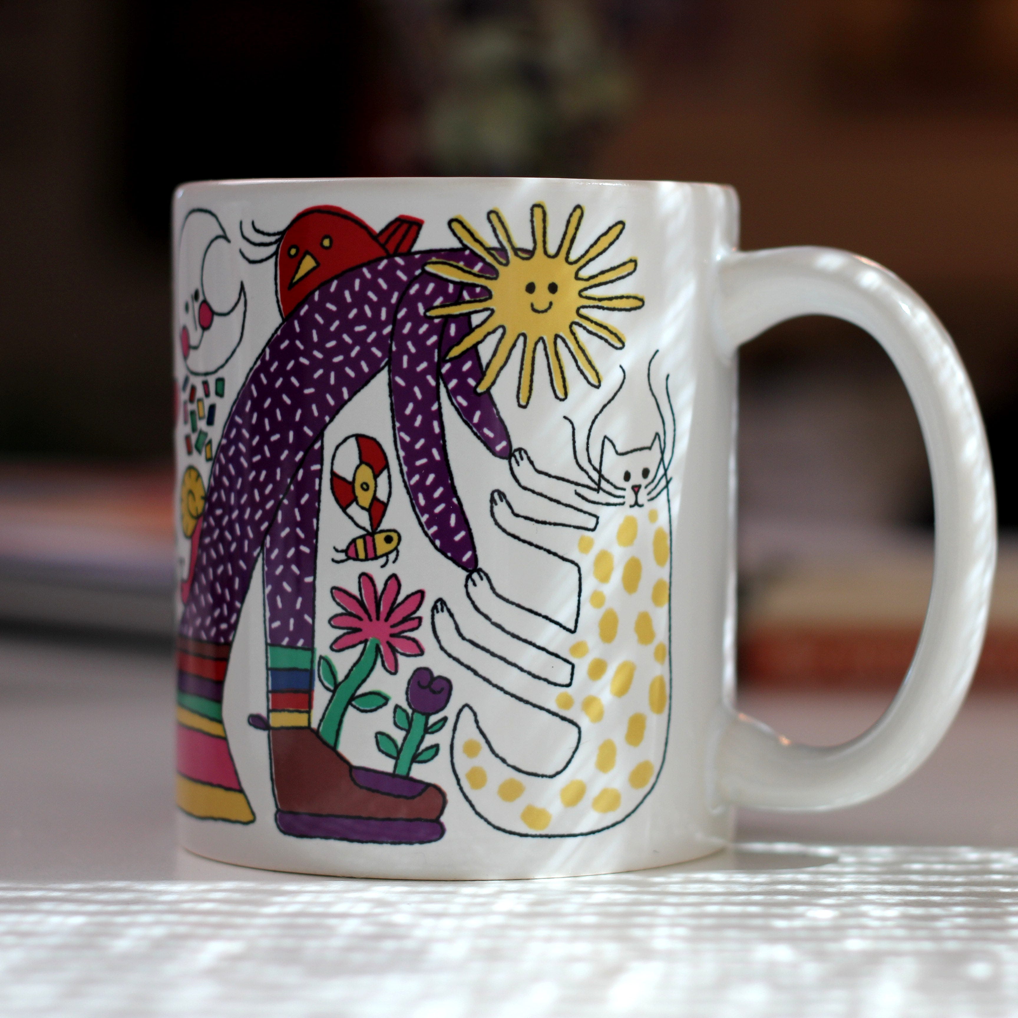 Jackie: This is a playful exploration of imagination and form. We see ourselves in everything, and the characters that I’ve used within this mug illustration are nonsensical and surreal. These mugs will be available for sale at Open Studios at Ar-ti-fact from Aug 17-18!